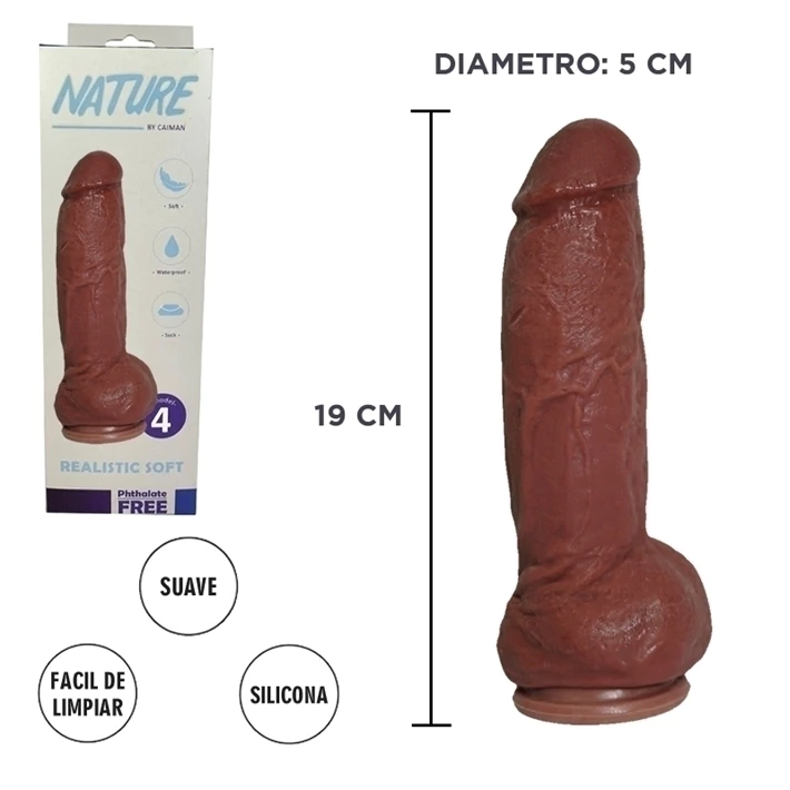 Cyber Nature, modelo 4. Suck realístico hecho de un material hipoalergénico, con textura suave y simil a la piel. El pene posee sopapa, lo que permite su adhesión a la superficie. Este artículo es resistente al agua. Se recomienda el uso de lubricantes Real Skin. Podes encontrar otros modelos de suck cyber, de distintos tamaños y diámetro.